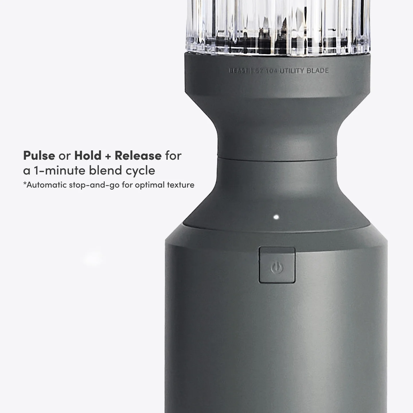 The 1200-watt motor of the Beast Mega Blender 1200 Plus delivers silky smooth results every time. With a motor strong enough to puree any chunks or fibrous ingredients, the blender is ideal for making smoothies, soups, cocktails, peanut butter, dips and more. Featuring sharp stainless steel blades, this premium blender includes a ribbed vessel that creates extra turbulence to break down chunks for a smoother texture. It includes three vessels that hold 500ml, 1000ml or 1200ml, making it perfect for personal use or sharing between 2-3 people. The blender includes a carry cap, straw cap and two straws for convenient portability, making it easy to take your drink anywhere. Simply press and hold the button until you get the texture you want, then drink straight from the blending cup. This blender is ideal for those who love smoothies on the move or experimenting with salad dressings, meal preps, and sauces. (This blender is not designed for hot foods or ingredients with rising agents.)