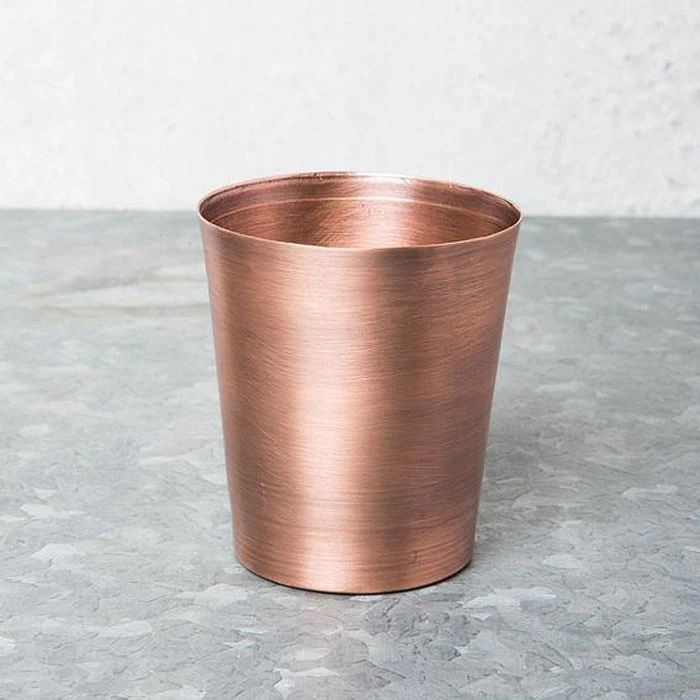 This Brushed Copper Water Cup from UNC Amsterdam has natural antimicrobial properties. Made in India of 100% copper that's uncoated on the inside but coated on the outside to preserve appearance. It should only be used with cold water. A matching Brushed Copper Water Jug with Wooden Lid is also available.