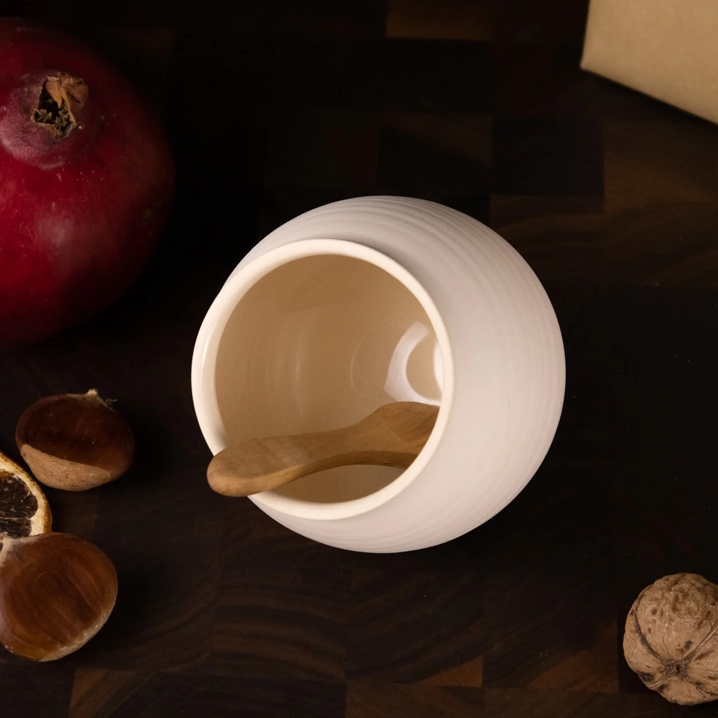 A ceramic salt cellar in a simple, homey design, handmade in Stoke-on-Trent.